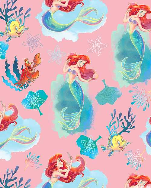 Iconic characters from the beloved Disney movie, "The Little Mermaid", are seen across the design including Ariel, Flounder, and Sebastian. Larger figures are about 4", from the 'Disney Princess' collection by © Disney for Springs. Disney stipulates that this product cannot be shipped outside the USA, Puerto Rico and Canada. It is intended for home use only, not for manufacturing.