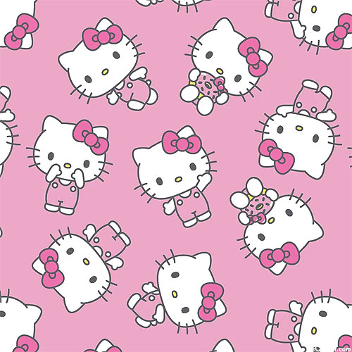 The iconic Sanrio Hello Kitty is seen in a variety of cute poses across this nostalgic design. Larger characters are about 2", 'Hello Kitty Pink Sweet' from the 'Hello Kitty' collection by Sanrio for Springs. This product is intended for home use only, not for manufacturing.