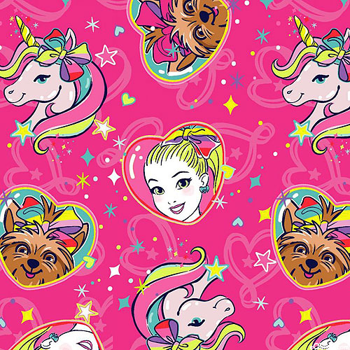 JoJo Siwa and her teacup yorkie BowBow are depicted in heart-shaped portraits with rainbow unicorns and confetti in the space between. Larger portraits are about 2", from the 'Jojo Friends Are Magic' collection by © 2020 Viacom International Inc., All rights reserved for Springs. Nickelodeon stipulates that this product cannot be shipped outside the USA and Puerto Rico. It is intended for home use only, not for manufacturing.