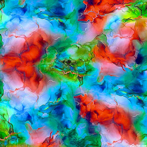 Cloudy textures ebb and flow across the design in a mesmerizing myriad of vividly mottled hues. Digitally printed, blender, from the 'Starburst' collection.
