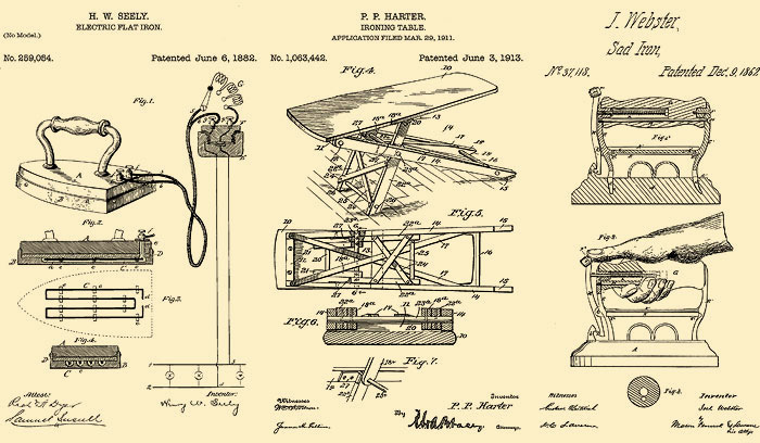 In this panel, detailed schematics for an antique iron are pictured across this charming design. 24" panel, from the 'Press On' collection by J. Wecker Frisch for Riley Blake Designs.