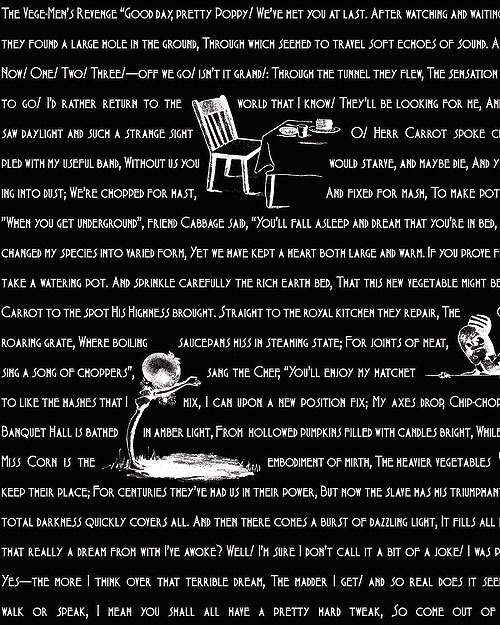 A spooky story is written across this festive design as various accompanying Halloween motifs are scattered between the text. Taller text is about 1/4", text runs from selvedge to selvedge, from the 'Pumpkin Patch' collection by J. Wecker Frisch for Riley Blake Designs.