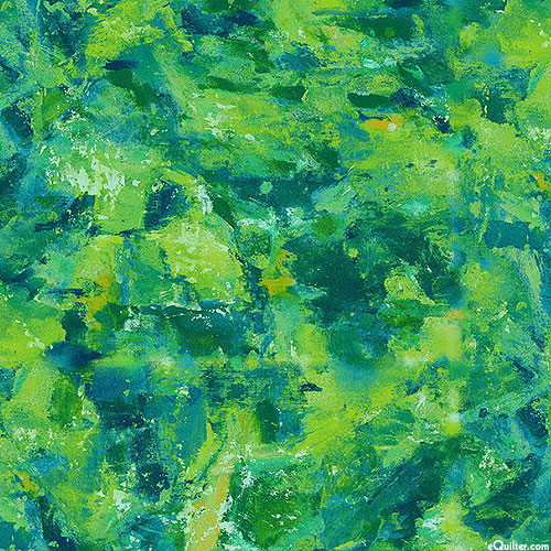 Forest impressions blend and transform into a vividly mottled display of color and shadow. Larger brush strokes are about 2", 'Water Lily Texture' from the 'Water Lilies' collection by Michael Miller Fabrics.