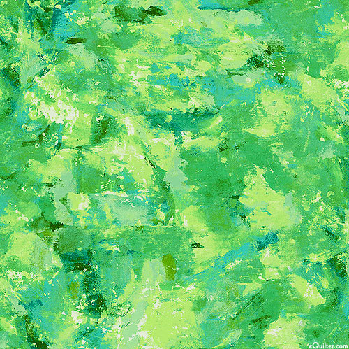 Forest impressions blend and transform into a vividly mottled display of color and shadow. Larger brush strokes are about 2", 'Water Lily Texture' from the 'Water Lilies' collection by Michael Miller Fabrics.