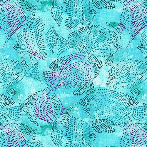 Dotted patterns coalesce into a vibrant school of fish swimming in the warm waters of the tropics. Larger fish are about 3", 'Fish Pond' from the 'Water Lilies' collection by Michael Miller Fabrics.