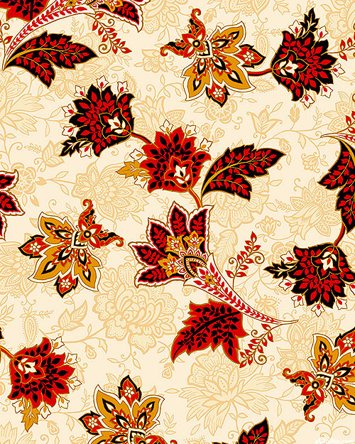 A garden of Jacobean-styled florals lend a regal elegance to this ornamental design. Digitally printed, larger flowers are about 2-1/2", 'Jacobean Dance' from the 'Jacobean Dreams' collection by Michael Miller Fabrics.
