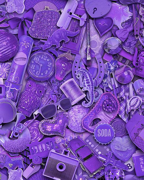 A kitschy spread of various odds and ends are scattered across this dazzling tonal design. Digitally printed, larger objects are about 4-1/2", from the 'Living Color' collection by Aimee Stewart for Michael Miller Fabrics.
