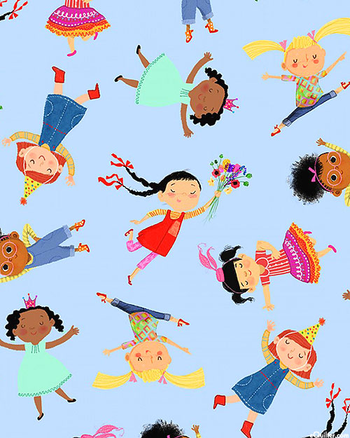 Children of all races leap and dance happily together. Digitally printed, taller girls are about 2-1/2", 'Dream Girls' from the 'We Are All Kinds of Wonderful' collection by Vanessa Brantley Newton for Michael Miller Fabrics. Not for purchase by manufacturers.