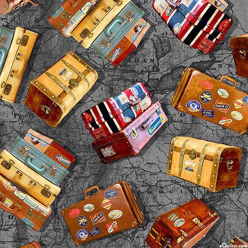 A vintage collection of suitcases makes a perfect fabric for creating apparel, a tote bag or adding to your quilting project! Digitally printed, larger suitcases are about 3", 'Traveling Trunks' from the 'All Aboard' collection by Michael Miller Fabrics.