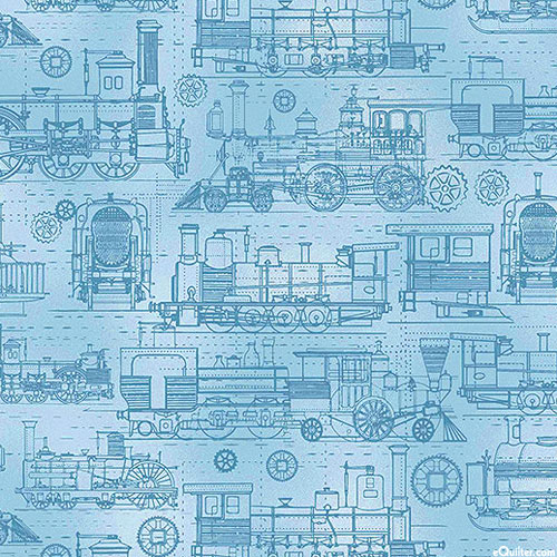 Michael Miller Fabrics All Aboard - Locomotives - Sky Blue