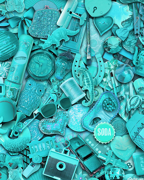 A kitschy spread of various odds and ends are scattered across this dazzling tonal design. Digitally printed, larger objects are about 4-1/2", from the 'Living Color' collection by Aimee Stewart for Michael Miller Fabrics.