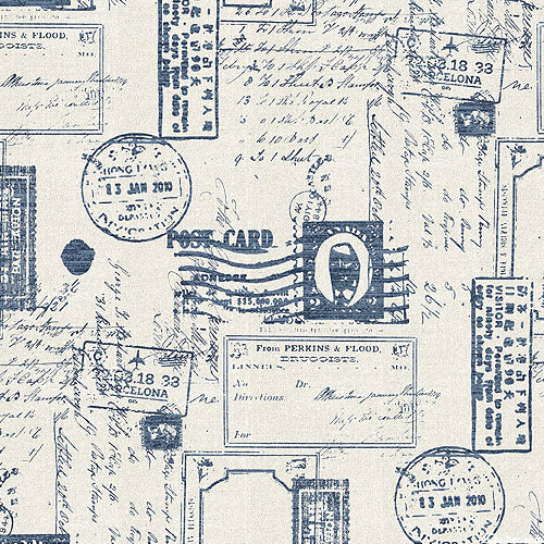 Vintage postal stamps, cursive handwriting, and other postage motifs turn this simple fabric into a great vintage coordinate to add to any number of projects. Digitally printed, larger stamps are about 2-1/2", 'Post It' from the 'True Blue' collection by Michael Miller Fabrics.