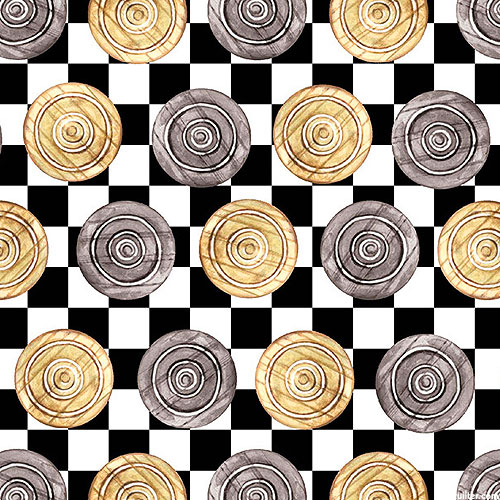 Michael Miller Fabrics Game On - Wooden Checkers - Black