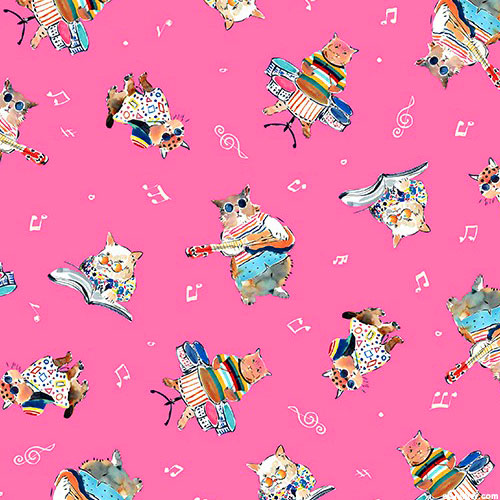 An adorable band of musical kitties play their instruments together. Digitally printed, larger cats are about 1-3/4", 'Tossed Musical Cats' from the 'Musical Cats' collection by Michael Miller Fabrics.