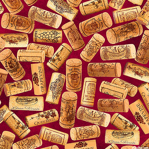 Wine corks printed with various seals and stamps are tossed across this wine-lovers design. Digitally printed, larger corks are about 1-1/2", 'Wine Corks' from the 'Viva Vino' collection by Michael Miller Fabrics.