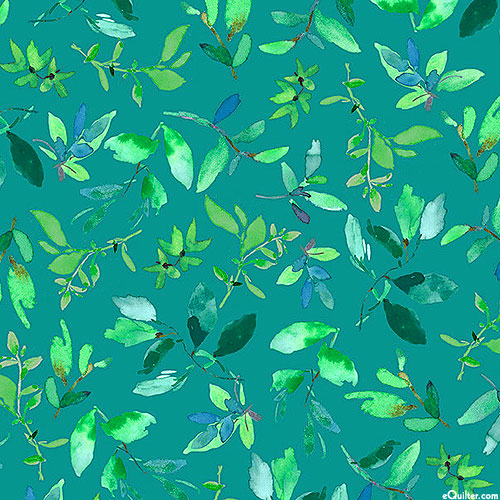 A lush scatter of leafy fronds are tossed against a solid background in this verdant forest-themed design. Digitally printed, larger leaves are about 3/4", 'Lake Leaves' from the 'Flower Lake' collection by Michael Miller Fabrics.
