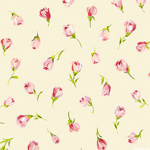 Small roses tossed against a solid background lend a floral elegance to this charming design. Digitally printed, larger flowers are about 1", 'Petite Roses' from the 'Vintage Perfumery' collection by Michael Miller Fabrics.