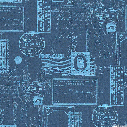 Vintage postal stamps, cursive handwriting, and other postage motifs turn this simple fabric into a great vintage coordinate to add to any number of projects. Digitally printed, larger stamps are about 2-1/2", 'Post It' from the 'True Blue' collection by Michael Miller Fabrics.