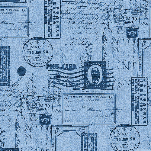 Vintage postal stamps, cursive handwriting, and other postage motifs turn this simple fabric into a great vintage coordinate to add to any number of projects. Digitally printed, larger stamps are about 2-1/2", 'Post It' from the 'True Blue' collection by Michael Miller Fabrics.