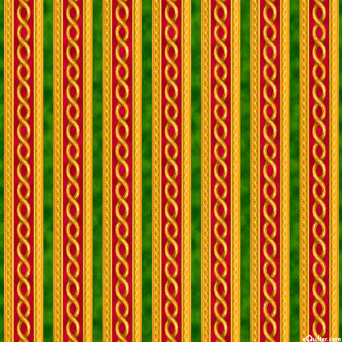 A regal stripe runs the length of this elegant and charming design. Digitally printed, wider stripes are about 3/4", stripes run the length of the fabric, from the 'The Newborn King' collection by Menga for Quilting Treasures.
