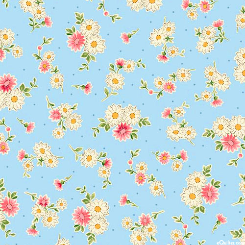 Quilting Treasures Vintage Blooms - Tossed Blossoms - Dawn Blue