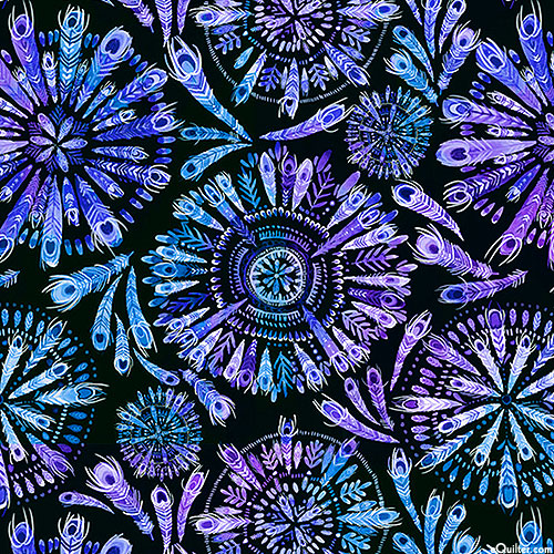 P&B Textiles Peacock Serenade - Feather Mandalas - Black