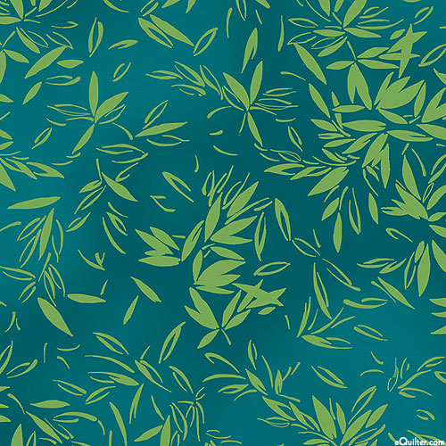 The distinct leaves of a bamboo tree stand out against a mottled background in this beautiful blender. Larger leaves are about 3/8", from the 'Koi Pond' collection by Clint Eagar for P&B Textiles.