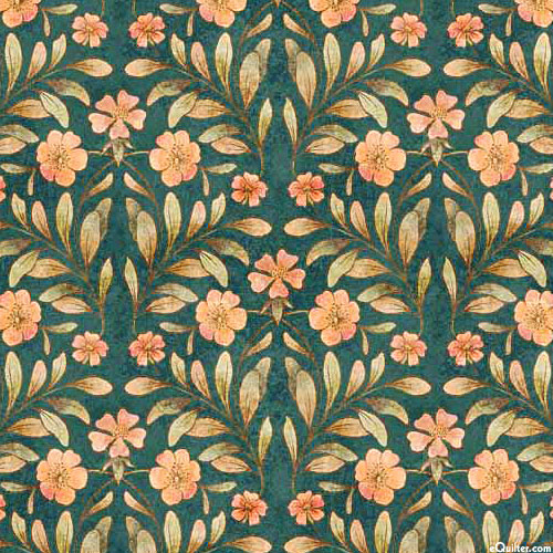 Elegant florals bloom boldly in warm sunlight of a lush and leafy grovce. Digitally printed, larger flowers are about 3/4", from the 'Cotton Tails' collection by Dan Morris for Quilting Treasures.
