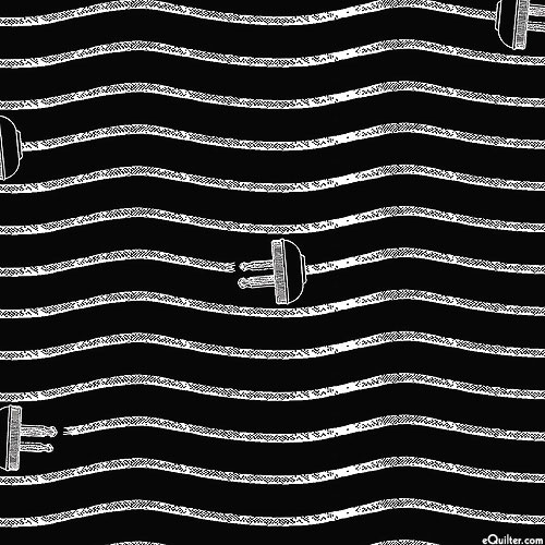 Electrical cords are layered into a wavy stripe across this electric tonal. Larger plugs are about 1", from the 'Press On' collection by J. Wecker Frisch for Riley Blake Designs.