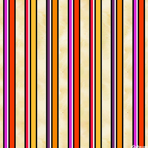 A simple stripe of varying hues runs the length of the design. Wider stripes are about 1/4", stripes run the length of the fabric, from the 'Lights Of Hope' collection by Donna Elias for Elizabeth's Studio.