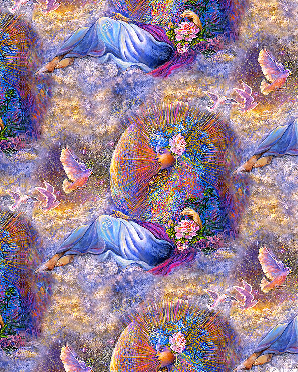 A vivid and painterly depiction of an angel of peace exudes heavenly charm as she gazes upon a dove carrying an olive branch to her in this picturesque piece. Digitally printed, larger figures are about 6", from the 'Angel Of Peace' collection by Josephine Wall for 3 Wishes Fabric.
