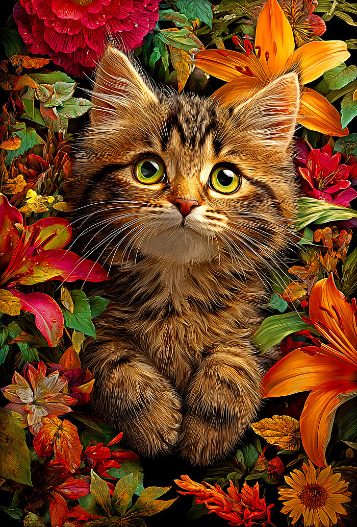 Rubin Design Studio Kitten Heaven Siberian - Multi - 29" x 44" PANEL