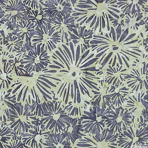 A lush landscape of flourishing garden florals are depicted in vivid hues within mottled batik textures. Batik, larger flowers are about 3-1/2", from the 'Faux Finish' collection by Banyan Batiks for Northcott Fabrics.