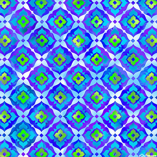 Benartex Fabrics Luminous Blooms - Diamond Geo - Azure Blue