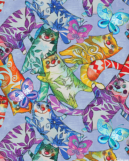 Benartex Fabrics Sunshine Cats - Fun Felines - Periwinkle
