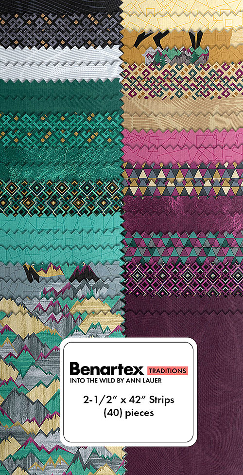 A rustic collection of wild horses and desert-themed geometric patterns coalesce in this western pre-cut. 'Into The Wild' collection strip pack by Ann Lauer for Benartex Fabrics, pack includes forty 2-1/2" x 42" strips.