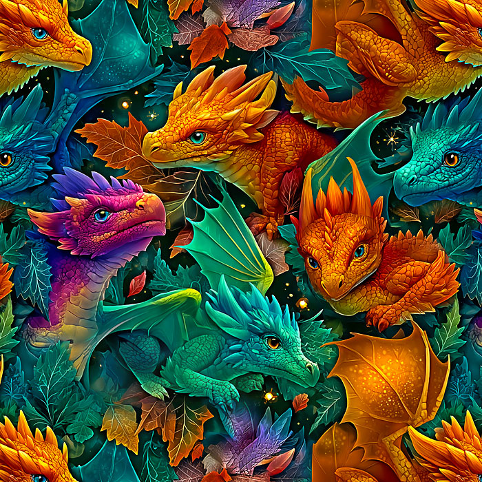 The faces of adorable baby dragons are packed together in this cute fantasy-themed design. Digitally printed, dragons are about 4", 'Baby Dragon Thunder 1' by the Rubin Design Studio, designed exclusively for eQuilter.