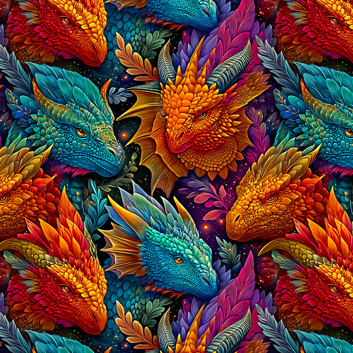 A mesmerizing myriad of dragons coil their bodies around one another to create this vividly vibrant design. Digitally printed, dragons are about 4", Dragon Thunder 1' by the Rubin Design Studio, designed exclusively for eQuilter.