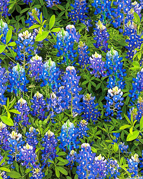 A lush landscape of bluebonnet flowers coalesce to create a captivating garden gala of texture and tone. Please prewash and allow for up to 7% shrinkage. 108" wide quilt backing, larger flowers are about 3", 'Bluebonnet Flowers' from the 'Bluebonnet 108" Wide' collection by Benartex Fabrics.