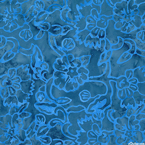 A lush and leafy expanse of blissful blooms are depicted in vivid hues within mottled batik textures. Batik, larger flowers are about 3".