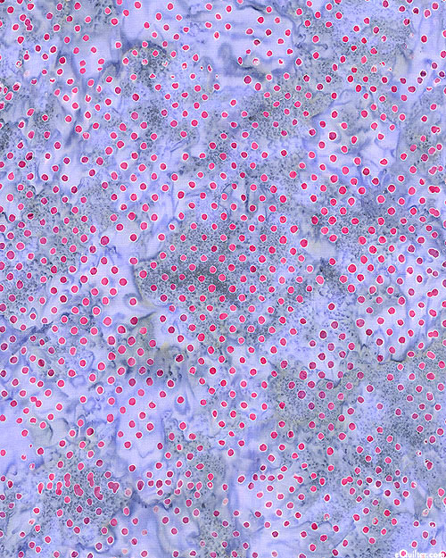 Neatly arranged dots that coalesce into diamond shapes are depicted in vivid hues within mottled batik textures. Batik, larger dots are about 3/16", 'Diamond Dot' from the 'Bali Dot Craze' collection by Benartex Fabrics.