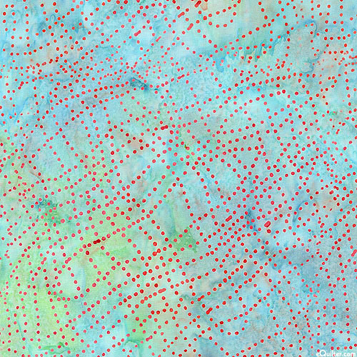 Dotted lines that ebb and flow into a net of wavy stripes are depicted in vivid hues within mottled batik textures. Batik, larger dots are about 1/8", 'Dot Wave' from the 'Bali Dot Craze' collection by Benartex Fabrics.