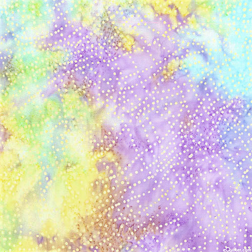 Dotted lines that ebb and flow into a net of wavy stripes are depicted in vivid hues within mottled batik textures. Batik, larger dots are about 1/8", 'Dot Wave' from the 'Bali Dot Craze' collection by Benartex Fabrics.