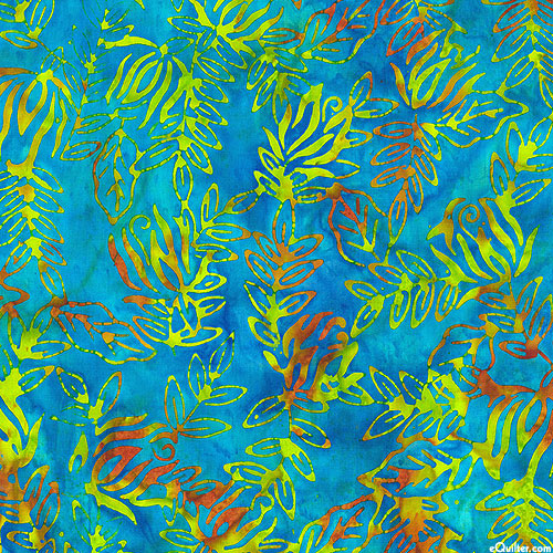 Benartex Fabrics Bali Fantasy Garden - Leafy Fronds Batik - Ocean Blue