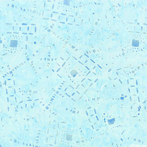Scattered square cells reminiscent of something you'd see under a microscope are depicted in vivid hues within mottled batik textures. Batik, larger shapes are about 1/2", from the 'Tonga Juniper' collection by Timeless Treasures.