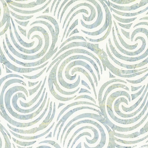 Swirling waves oscillate back and forth in this curling blender. Batik, larger waves are about 4-3/4", from the 'Tonga Juniper' collection by Timeless Treasures.