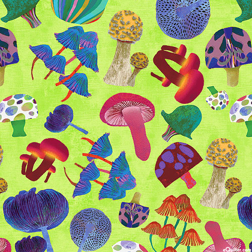Benartex Fabrics Modern Mushrooms - Fungal Forest - Sprout Green