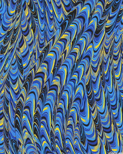 Benartex Fabrics Metallic Impressions - Marbling - Royal Blue/Gold