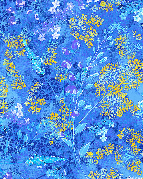Benartex Fabrics Metallic Impressions - Garden Bliss - Cobalt Blue/Gold