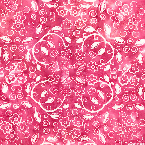 Natural medallions composed of leafy branches and lush florals are depicted in vivid hues within mottled batik textures. Batik, larger leaves are about 1", from the 'Chalk & Charcoal' collection by Riley Blake Designs.